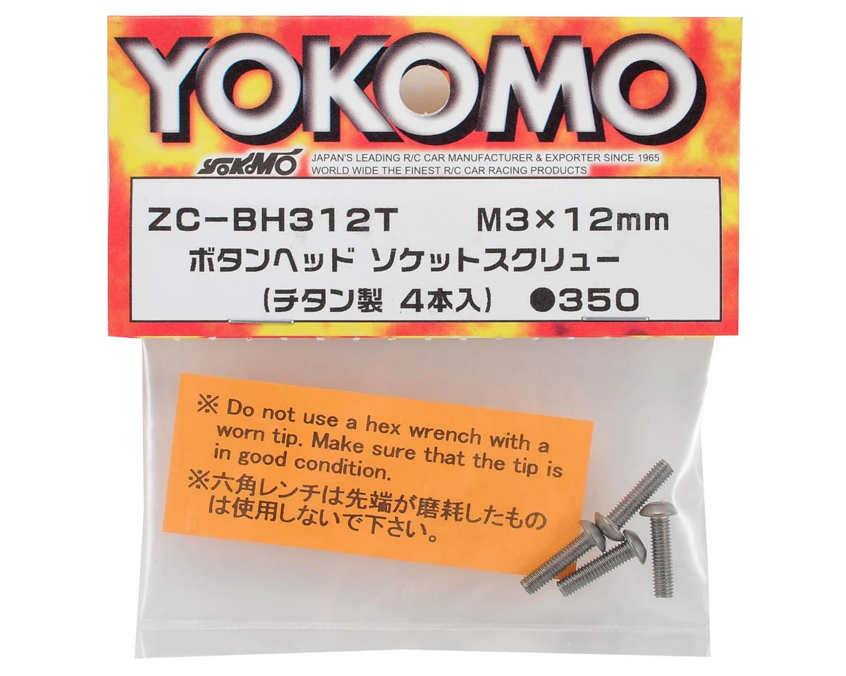 This is a pack of four optional Yokomo 3x12mm Titanium Button Head Screws, and are intended for use with the Yokomo B-Max2 1/10 scale buggy.