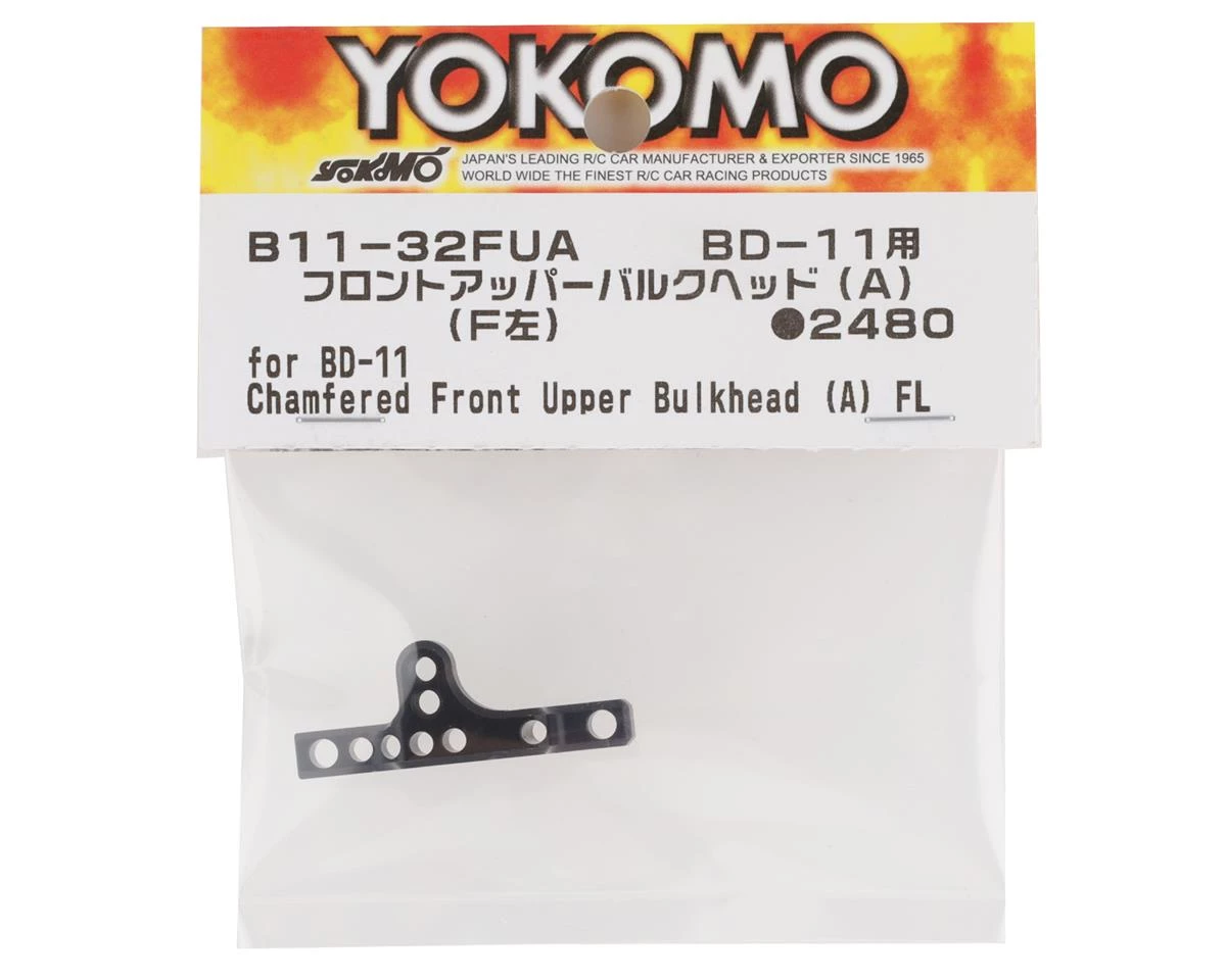 Yokomo BD11 Aluminum Front Upper Bulkhead. This replacement upper bulkhead is intended for the front of the Yokomo BD11. Package includes one upper front bulkhead.