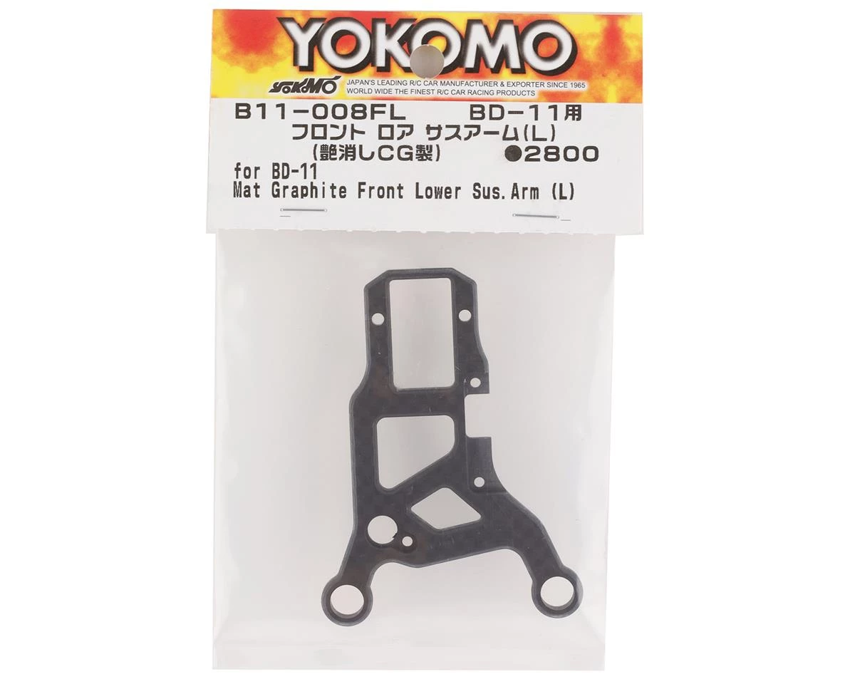 Yokomo BD11 Graphite Front Lower Suspension Arm. This replacement suspension arm is intended for the Yokomo BD11. Package includes one Left lower front suspension arm.