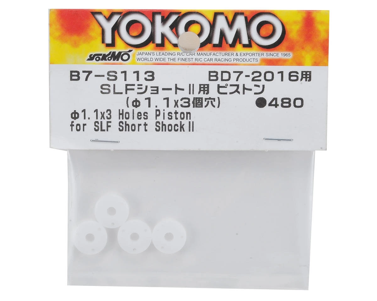 This is a pack of four Yokomo Shock Pistons for use with the SLF Short Shock II. These pistons feature three 1.1mm holes.