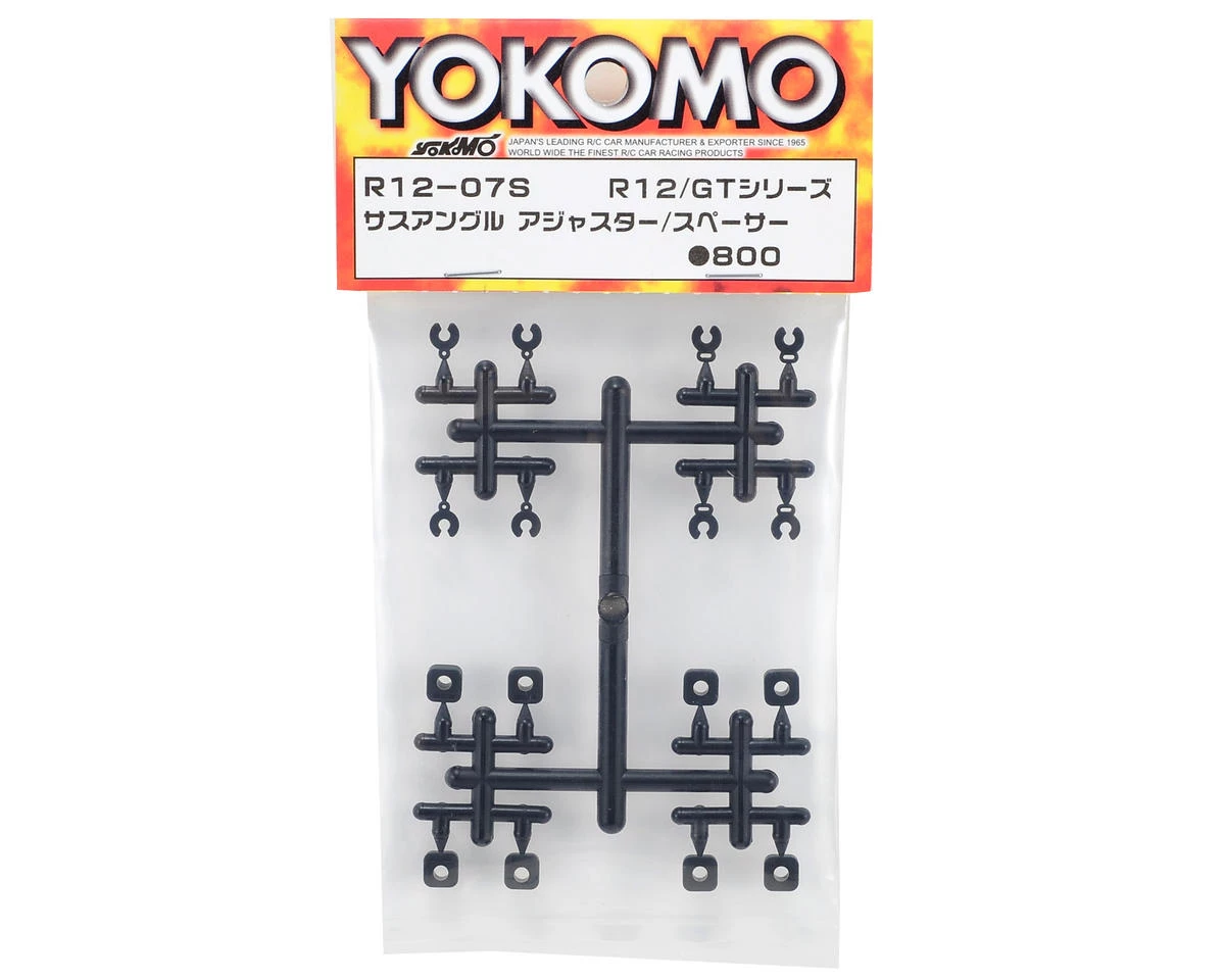 This is a replacement Yokomo Suspension Angle Adjuster and Spacer Set, and is intended for use with the Yokomo R12 1/12 scale pan car.Â